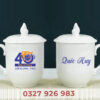 Ca sứ Bát Tràng men trắng quai C in logo quà tặng